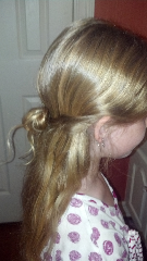 She doesn't want me to brush it, pull it up, put a bow, talk about it. Its certainly been a point of contention between us. Every so often i will show her a pic off the internet and ask if likes it. Then we come to agree on a hair style. This is my attempt at the hair bow style as seen on pinterest!